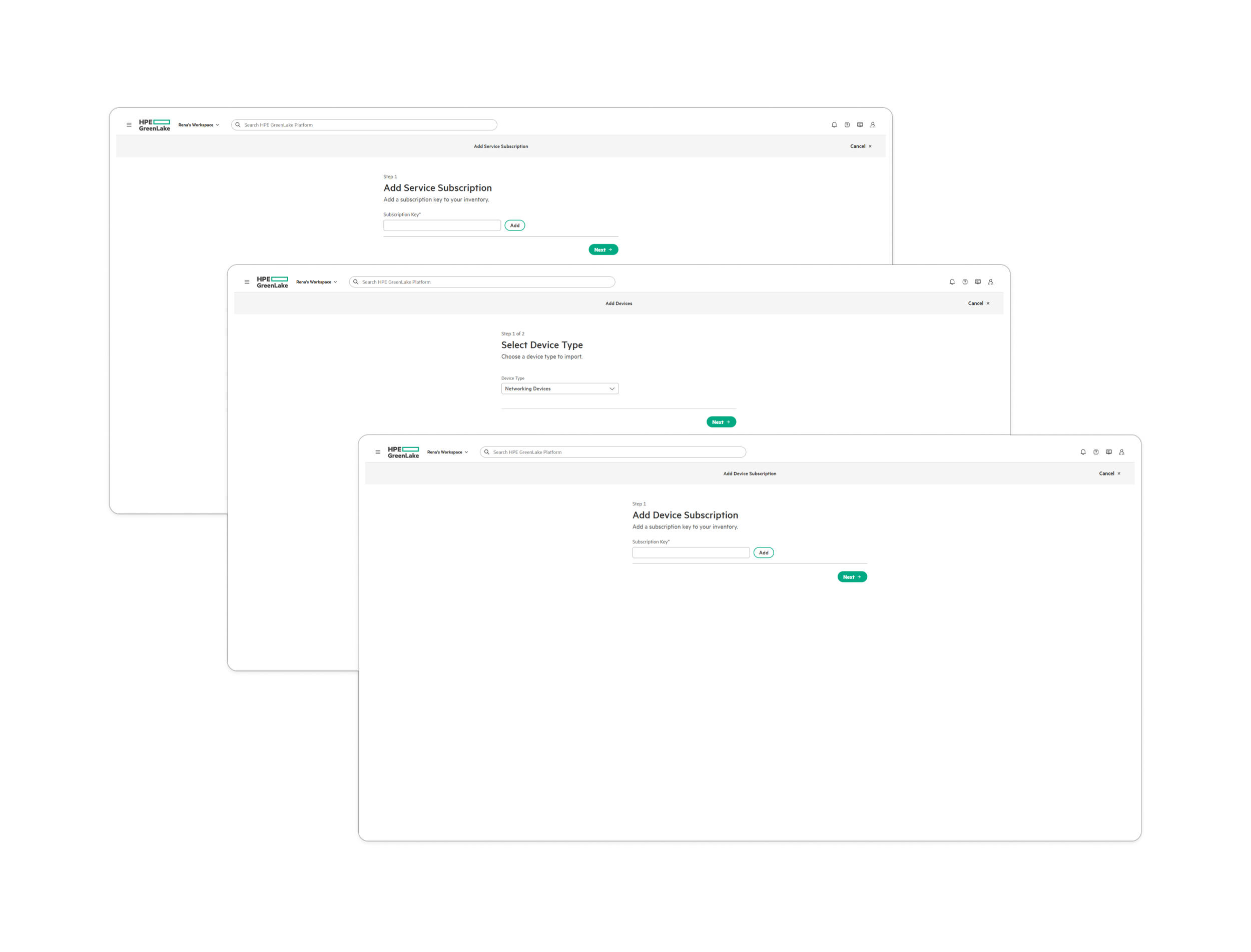 Adding to the friction, hardware and SaaS subscriptions came from different backend systems. GLCP received hardware serial numbers from the factory, while SaaS subscriptions flowed separately. Customers had to first claim their subscription key, then manually attach it to a hardware serial number that should already exist in GLCP, an extra step prone to confusion.